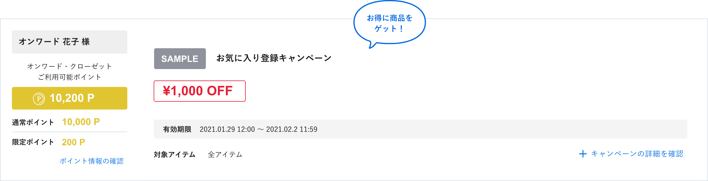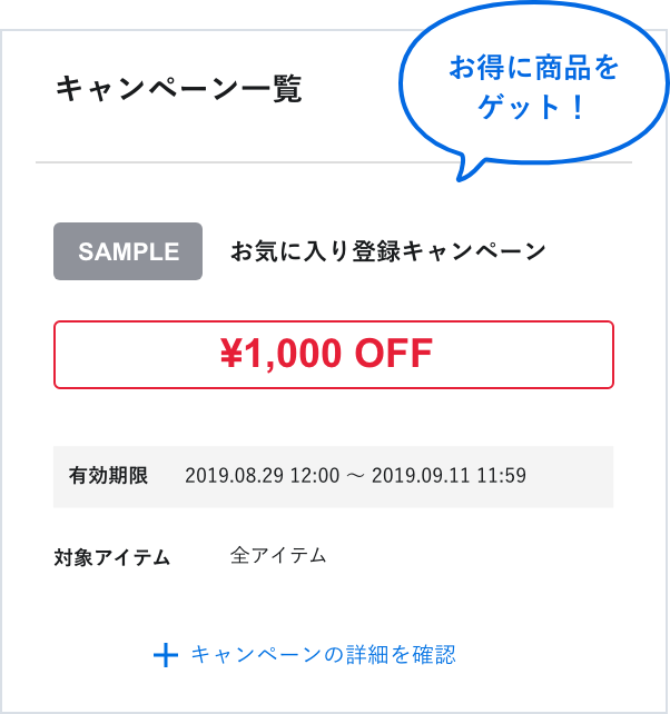 現在開催中の対象キャンペーンが一目でわかるので、お得な情報を見逃しません。
