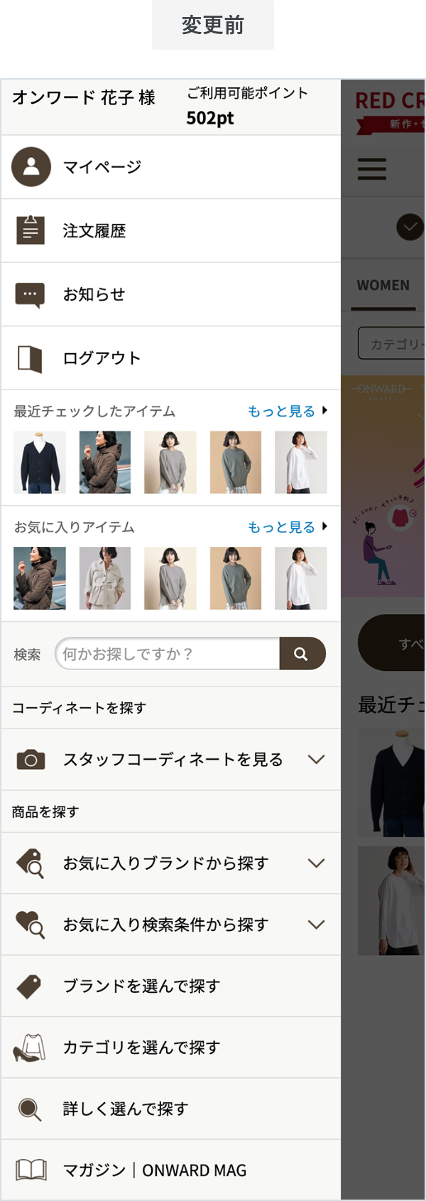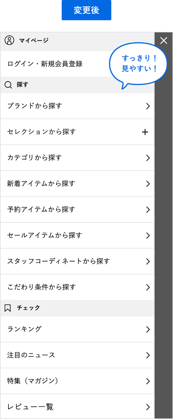 メニュー部分に必要な情報を厳選し、すっきりとさせ、以前よりも見やすく使いやすいデザインに変更いたしました。