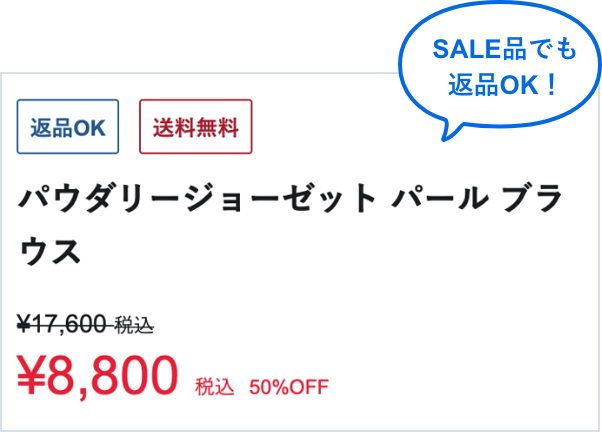 現在セール商品をご購入いただいた際に、納品書にて「セール返品不可」と記載されておりますが、実際には返品可能となります。