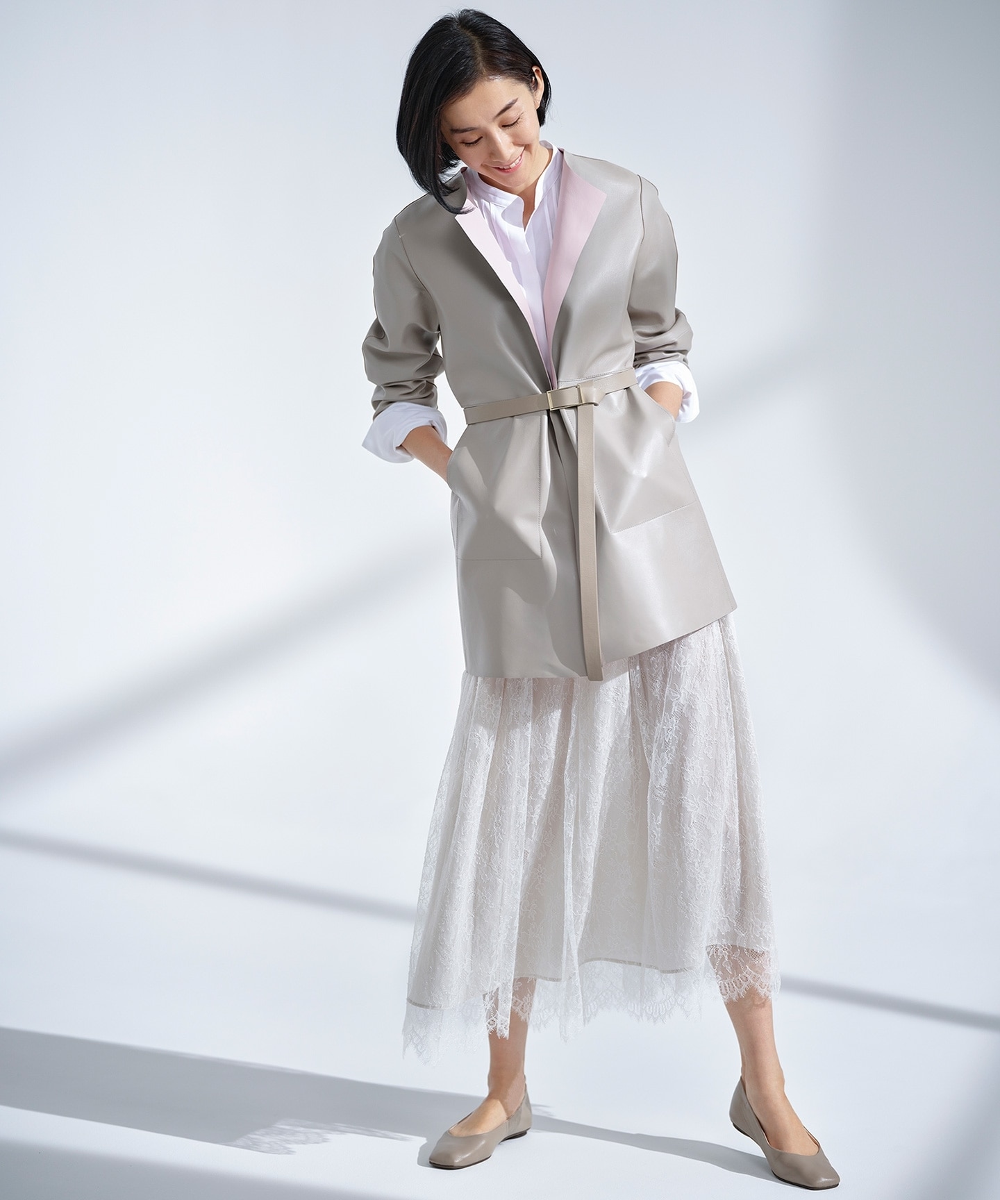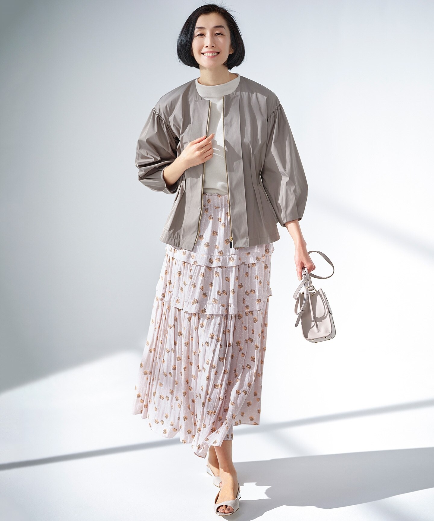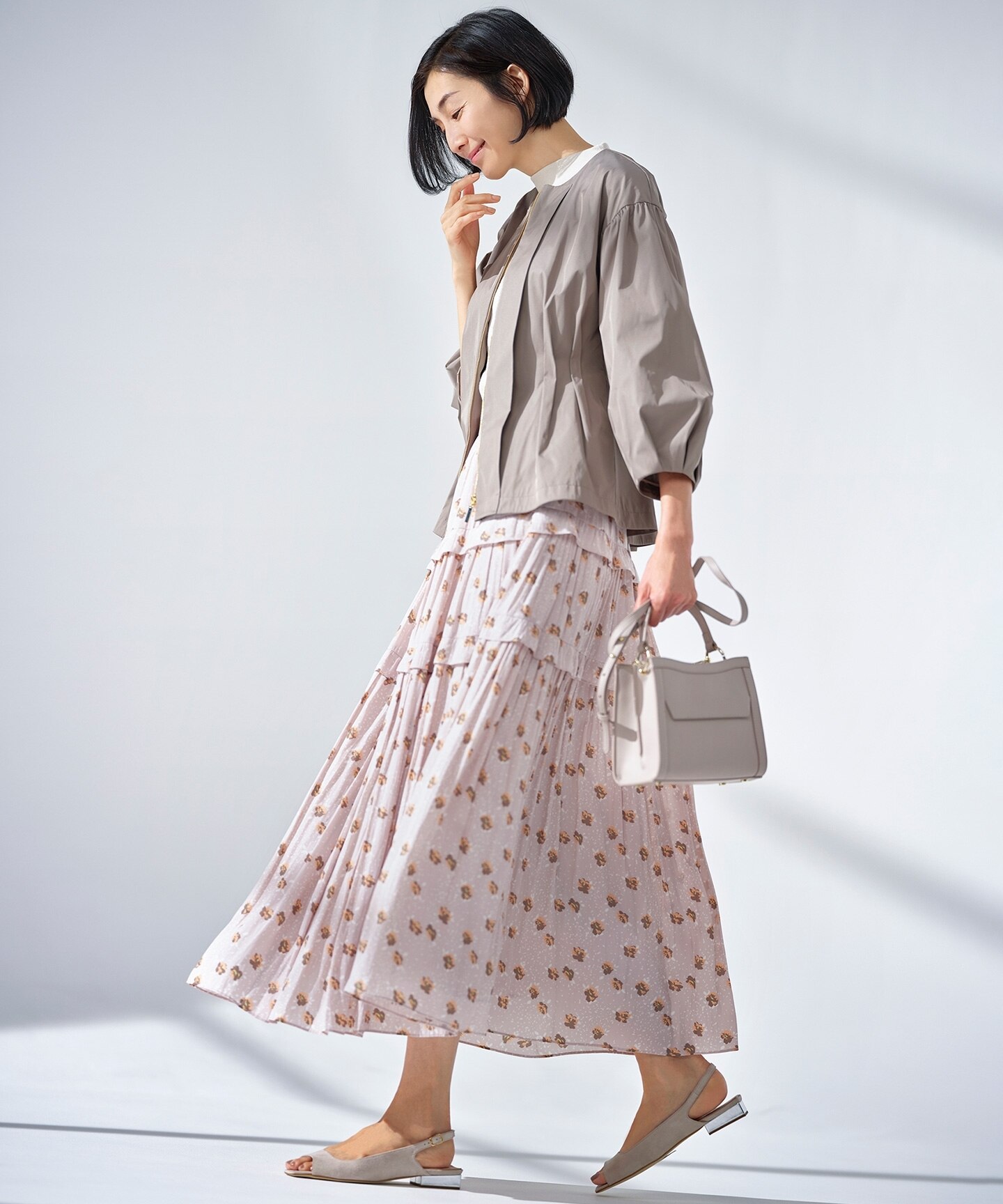 独特の光沢感を放つ素材を使った、装いと気分が春めくアイテムをご紹介します。