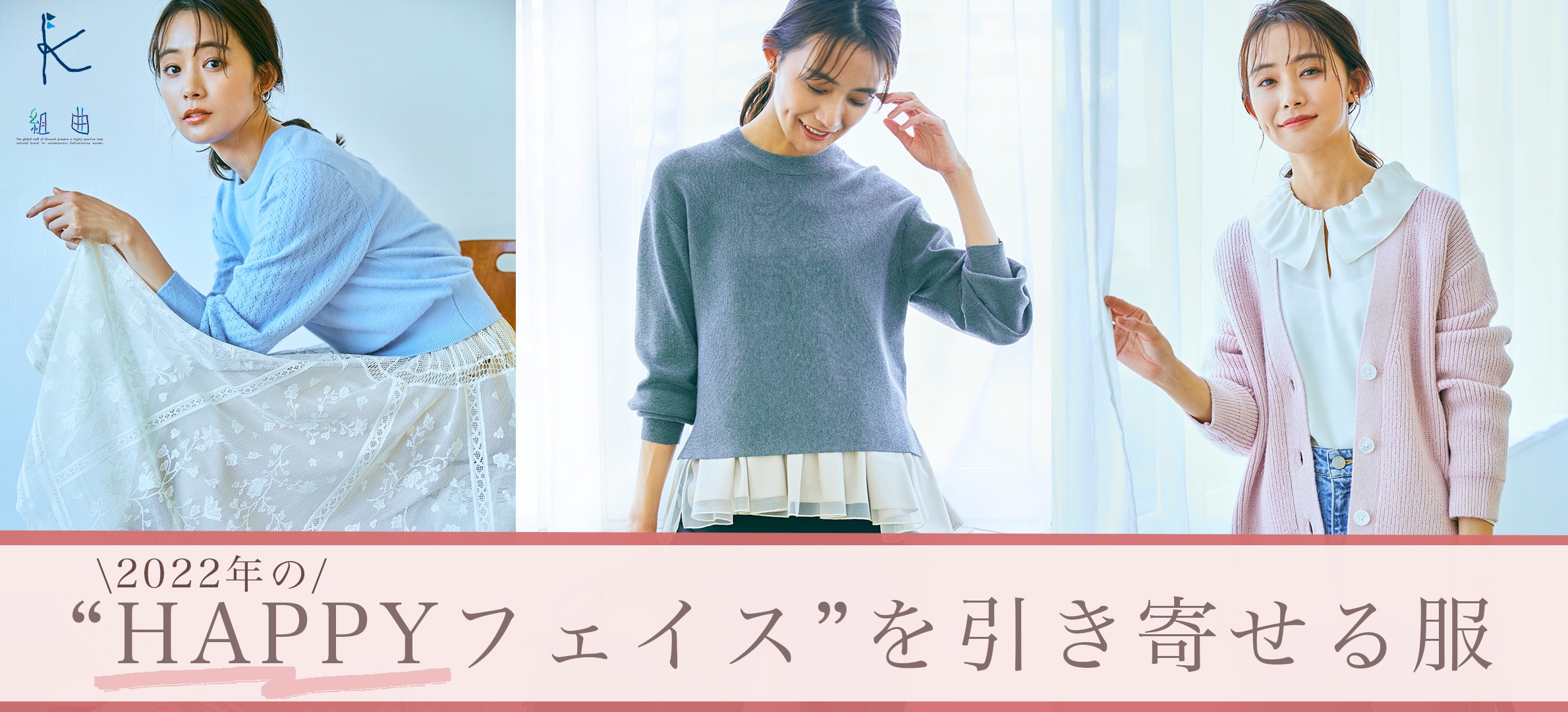 春カラーを取り入れたニットやカーディガンにもなる2WAYニットなど