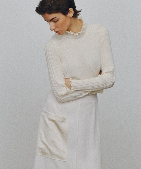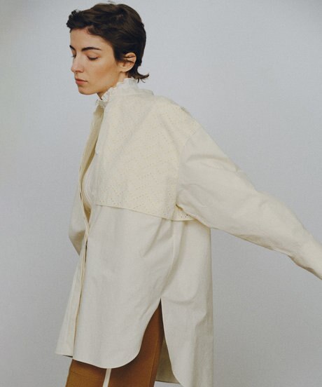 ブラウスの下から襟・袖のメロウをチラ見せさせたり、シンプルに着こなしたり、工夫して楽しめる一着。エクリュとブラックの使える2色展開で色違い買いも損なし。