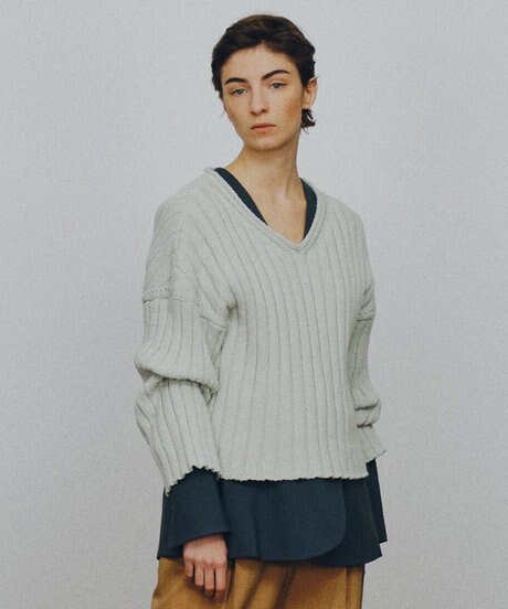 まるでコーヒー染めをしたようなエクリュとな春らしいセージ。素材感とカラーの絶妙なマッチングで羽織でもインナー使いでもこなれて見える。