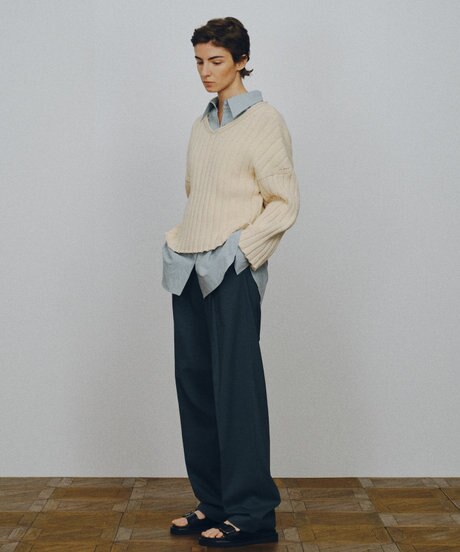 フェミニンさを調整した大人も着こなせるリブカットソー