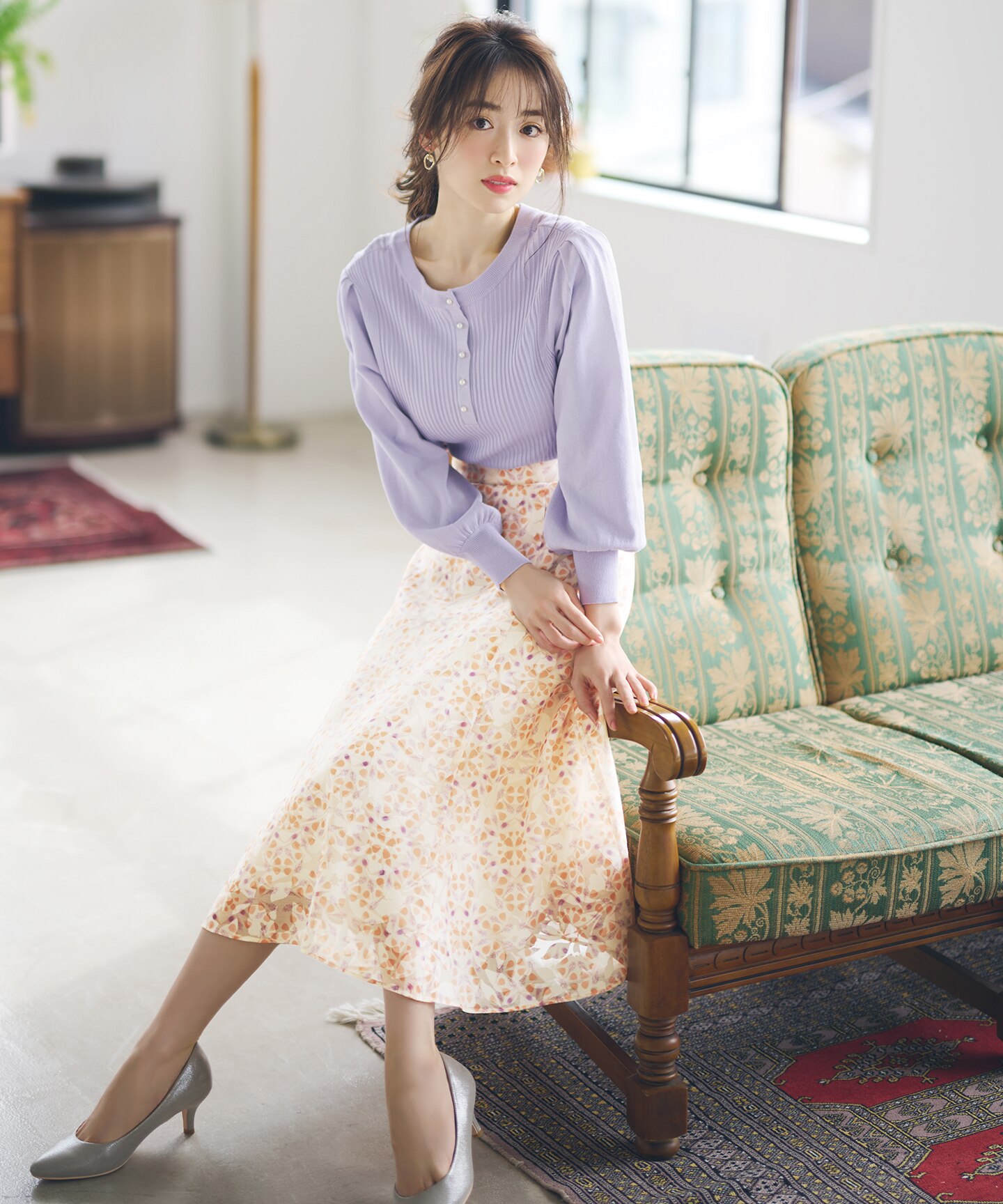 キャンディカラーやフラワー柄で春ムードを盛り上げるスタイリングをご紹介。
