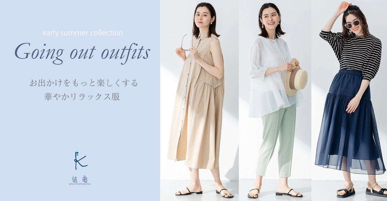暖かくなり、軽装でのお出かけが嬉しい季節。リラックス感ある着心地と、一枚で決まるアイテムが狙い目です。連休前にチェックしておきたい一押しアイテムをピックアップしました。ブラウスBLWXNM0501 ¥9,900税込BUYパンツPRWXNM0503 ¥9,900税込BUYカットソーKKWXNM0403 ¥5,940税込BUYスカートSKWXNM0501 ¥11,000税込BUYパンツPRWXNM0503 ¥9,900税込BUYカットソーKKWXNM0401 ¥8,910税込BUYパンツPRWXNM0450 ¥15,400税込BUYワンピースOPWXNM0500 ¥15,950税込BUYカットソーKKWXNM0402 ¥5,940税込BUYスカートSKWXNS0400 ¥11,000税込BUY組曲商品ページはこちら >