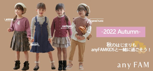 秋はもうすぐそこ!今年の秋もめいっぱい楽しむために、anyFAMKIDSと一緒に秋の準備をはじめよう!この秋オススメのアイテムをたっぷりご紹介いたします。 羽織りアイテム 羽織りアイテム トップス トップス ボトムス ボトムス ワンピース ワンピース シューズ&雑貨 シューズ&雑貨 羽織りアイテム トップス 在庫なし 30%OFF ¥1,498 OFF ANY KIDS ニットベストレイヤードチュニック ¥3,492 30%OFF ボトムス ワンピース シューズ&雑貨 在庫なし 30%OFF ¥1,287 OFF ANY KIDS IFME CALIN バックリボンラメニットスニーカー ¥3,003 30%OFF 在庫なし ANY KIDS リボンベルクロハンプバレエ ¥2,990