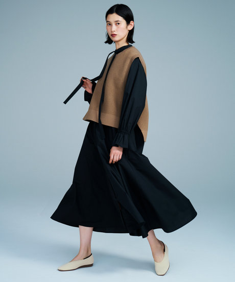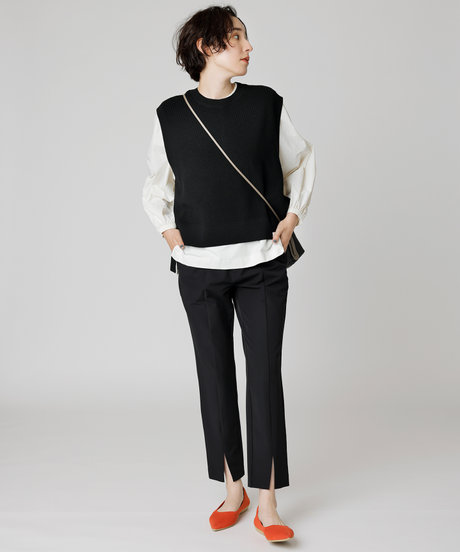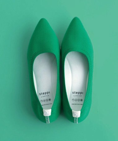 少し広めのスクエアトゥが今っぽく、指先も快適な履き心地。しっかりとしたスクエアと、履き口のラインを少し深くしたことで、ほんのりモードな見え感でスタイリングに鮮度が生まれます。トップラインが高いので、足を包み込んでくれるような感覚がアップ。ニット素材のsteppiならではの履き心地です。