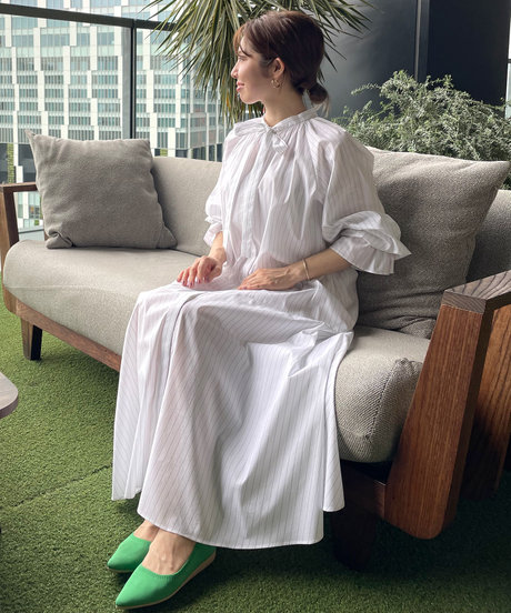 ホワイトワンピ×グリーンパンプス