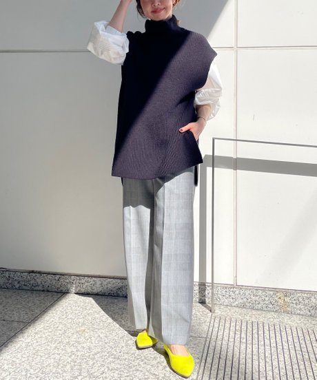 チェックパンツ×イエローパンプス