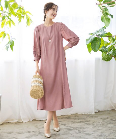 上身頃のタックデザインとフレアシルエットが上品さを叶えるワンピース。