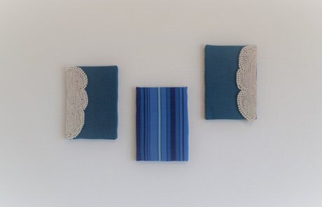 一枚の生地でひとつのパネルを作成し、アートのように飾るのがポピュラーですが、別の生地で縁取りをするなど、複数枚の生地を重ねて貼り合わせるのも素敵ですね。
