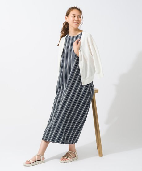 大人のストライプ柄ワンピースは体型をカバーするAラインシルエット、