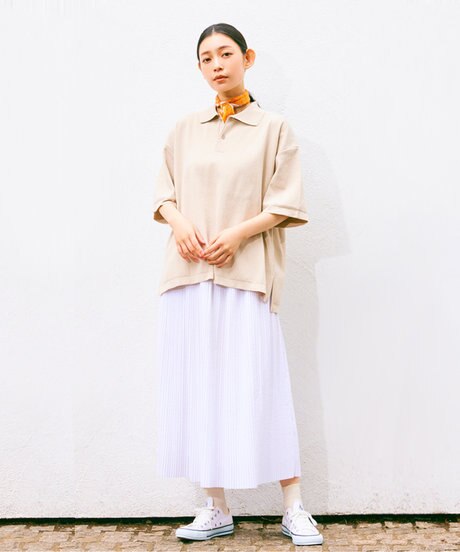 ゆったりとしたリラックス感のあるニット素材のポロ。独特なハリコシとしなやかさが〇