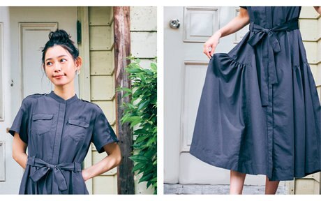フェミニンなシルエットの中にメンズライクな要素を加えた可愛すぎない大人のサマードレス。