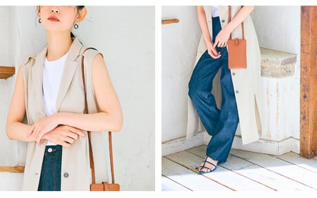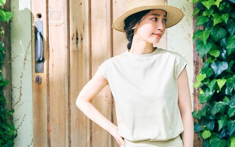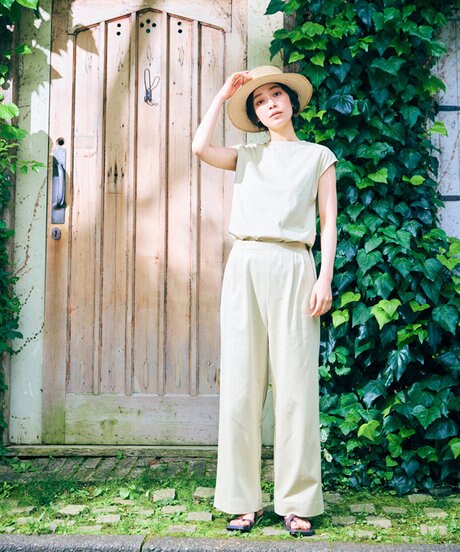 和紙混素材ならではの清涼感を感じさせるさらっとした生地と抜け感のあるデザイン。