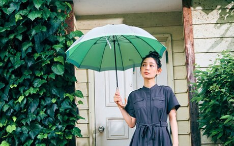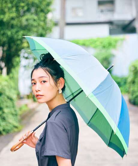 涼し気なブルーで夏のUVを上手にカット。内側の色味も楽しい晴雨兼用傘。