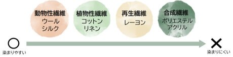 主成分がタンパク質である動物性繊維が一番良く染まります。