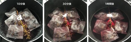 15~20分程浸したら染まり具合を確認します。
