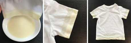 2枚目のTシャツは袖と裾の端を豆乳に浸しました。