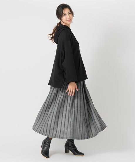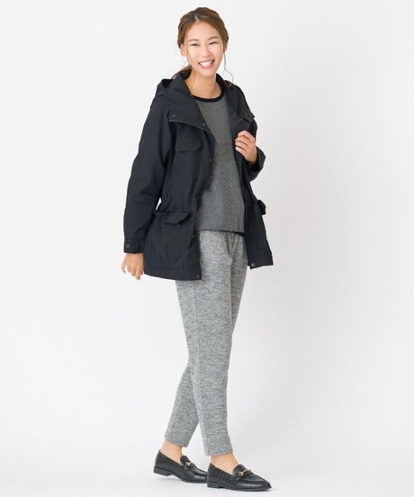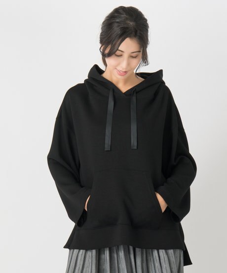 フードのリボンと袖のボタンが大人かわいいパーカー