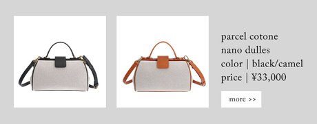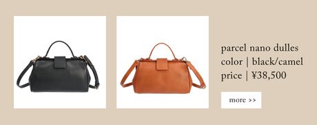 人気シリーズparcelのダレスバッグがコンパクトに進化。パカっと開く口枠の使いやすさはそのままに、よりスマートに持つことができるサイズ感になっています。