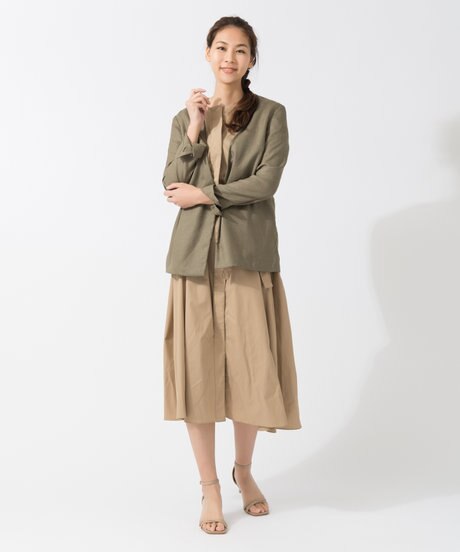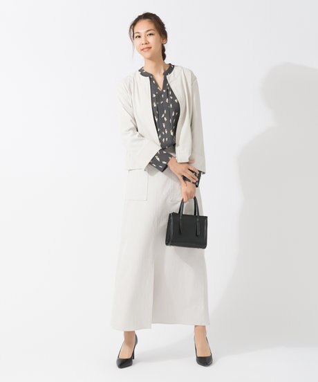 シンプルなシルエットのジャケットとスカートなら