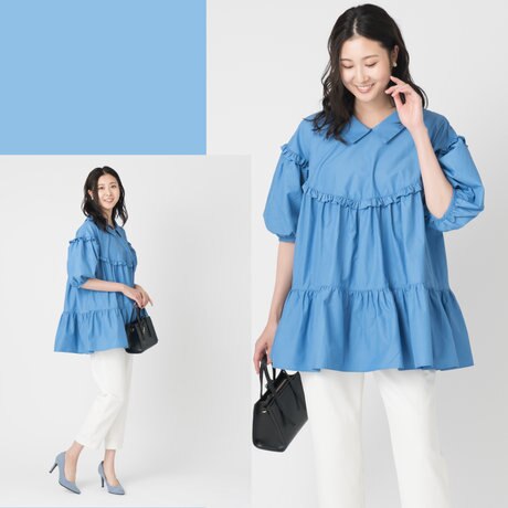 大人可愛いデザインチュニックは主役級アイテム。シンプルなパンツに合わせるだけでお出かけコーデに。