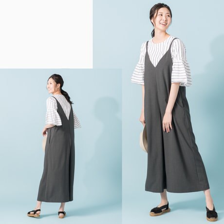 さらっとした着心地の大人キャミロンパース。カジュアル過ぎないシルエットで大人の楽ちんアイテムにおすすめ。