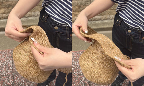 ― つばのふちにはワイヤーが入っているので、好きな形で楽しむことも。折りたためる素材なので、旅のお供にもよさそうです。個人的には、ありそうでなかった同素材の紐が気に入ってます。