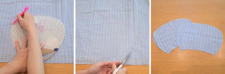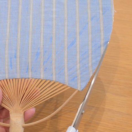 チャコペンでうちわの形に合わせて線を引き、ハサミでカットします。