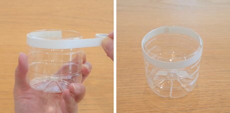 カットしたペットボトルの外側の縁に沿って両面テープを貼り付けます。