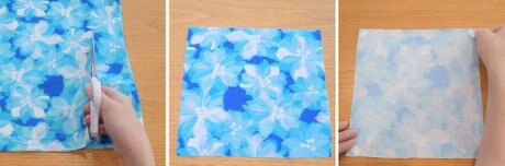 洋服を約20㎝×20㎝のサイズにカットし、四隅に両面テープを貼ります。