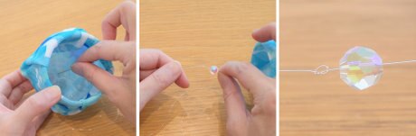 テグスが抜けないように、内側からビーズを通し結び目を作り固定します。