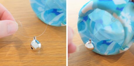更に、ビーズから約6㎝~7㎝の間隔を空けて鈴を取り付けます。