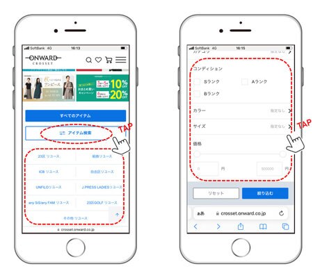 カテゴリー検索オンワード・リユースパークの商品はすべて1点物ですので、商品数が他のブランドよりも多いです。欲しい商品を探すために検索ツールをご利用ください。まずは気になるブランドとサイズで検索するのがおすすめです。 〉〉オンワードアプリ についてはこちらから 〉〉オンワードメンバーズ ログイン・新規会員登録はこちらから