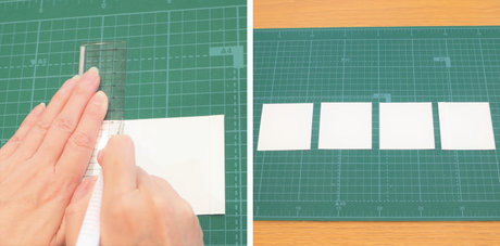 1枚はそのまま、その他の3枚は6.5cmの正方形になるようにカットします。