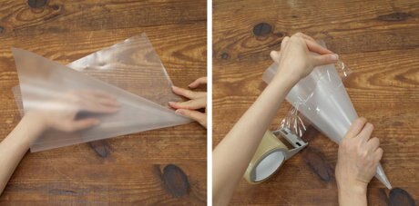 フリルが崩れないように、上から透明ガムテープで固定します。