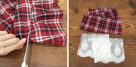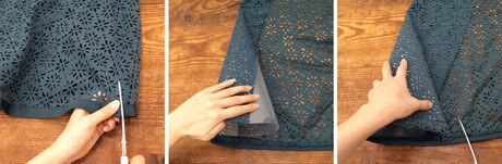 まずは、洋服の裾部分をカットします。