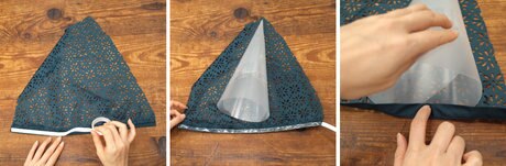 布の端に両面テープを貼り、先端がきれいに巻き付くように、土台の表面に沿って貼り合わせます。