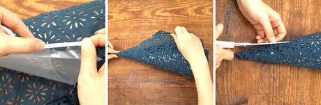 円錐の底が安定するように、余分な部分をハサミでカットします。