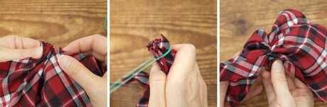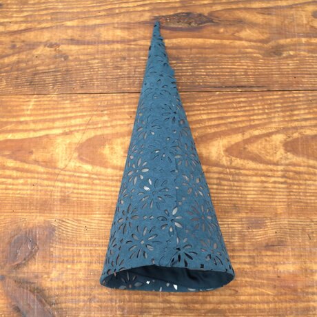ハリ感のある洋服を使ってボリュームのあるツリーを作ります。同じ色合いの布を使うと、まとまりが出て綺麗な仕上がりになります。
