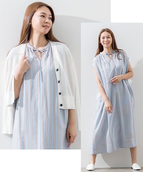 爽やかなストライプのワンピースはこれからの季節におすすめ。