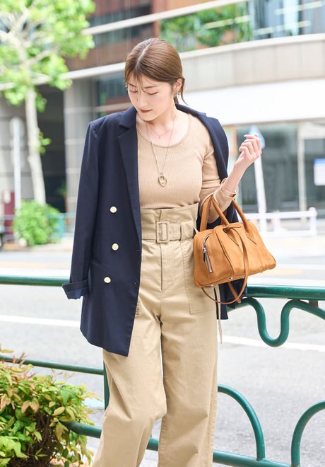 ネイビージャケット×ベージュトーンコーデには