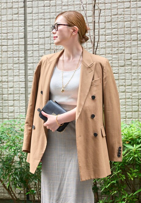 きちんと感のあるキャメルジャケットには