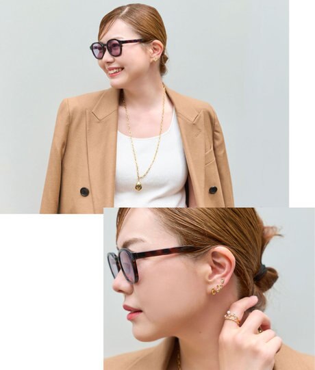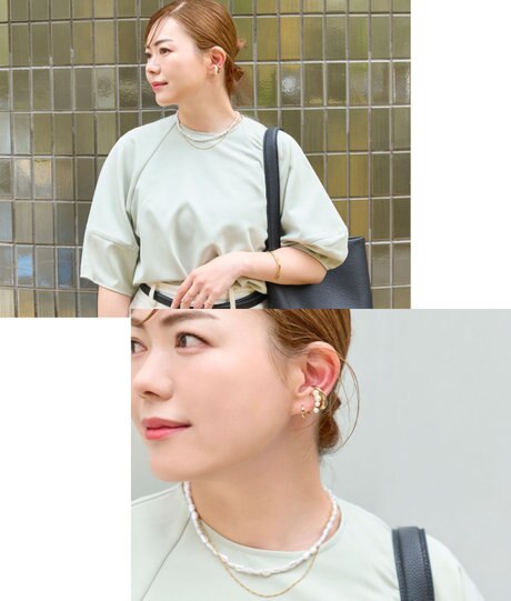 耳元にはイヤーカフでアクセントを添えて、
