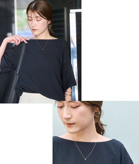 首元に寄り添う小粒のネックレスが、