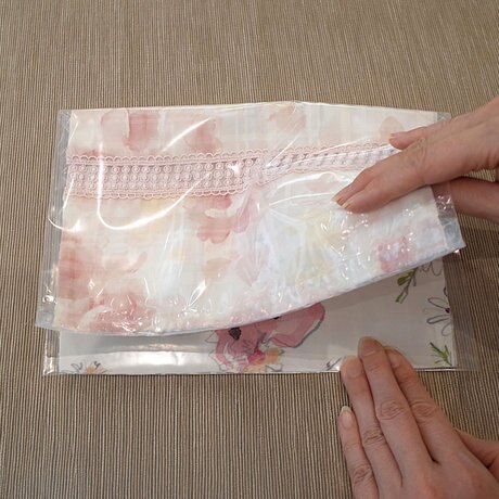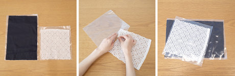 Aと同じように、ビニールより1cm小さいサイズに布を切り、ビニールの中に入れます。