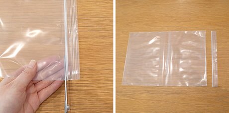 ジッパー付き保存袋の1枚目はAと同じようにジッパー部分を切り落とします。