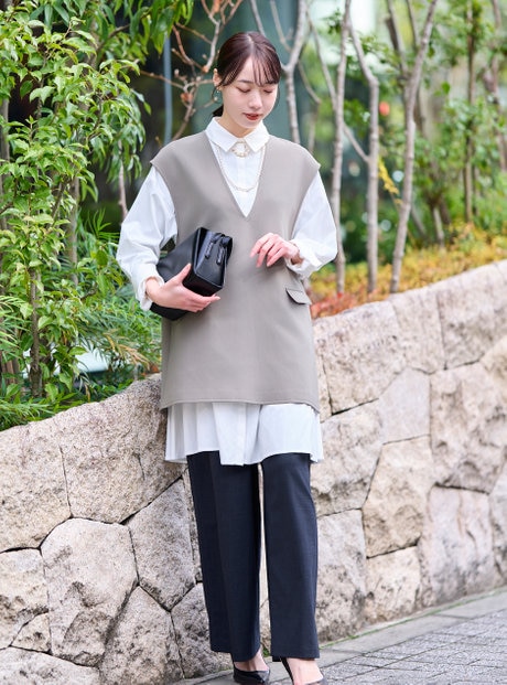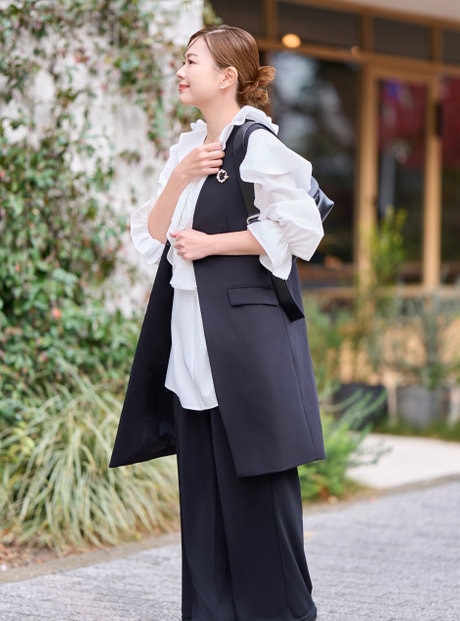 すっきりとしたジレスタイルに、
